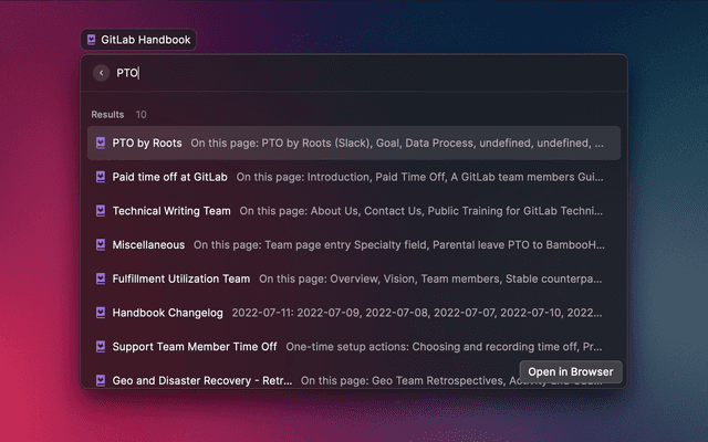 Raycast extension to search GitLab Docs, Handbook & Pajamas Design System.