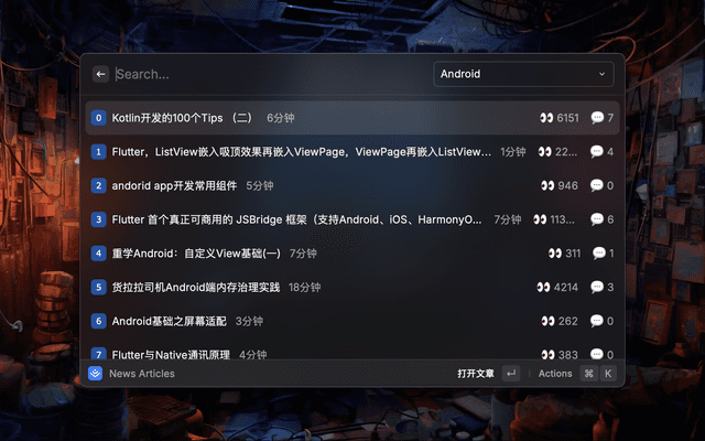 Display recommended articles under each category of Juejin, and support the selection and switching of different types of articles