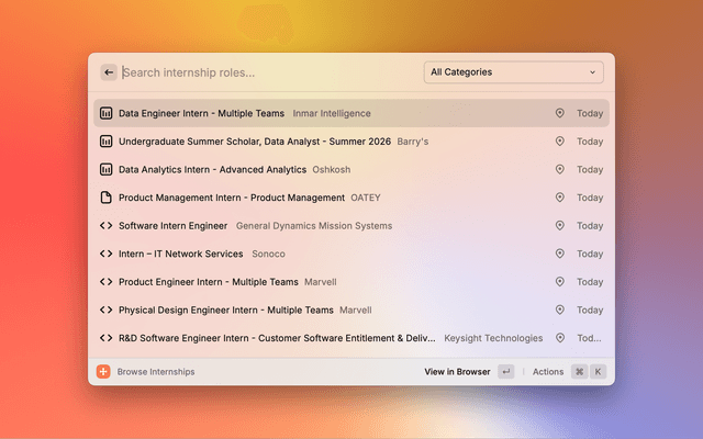- ⌘Space → "Find Internships"