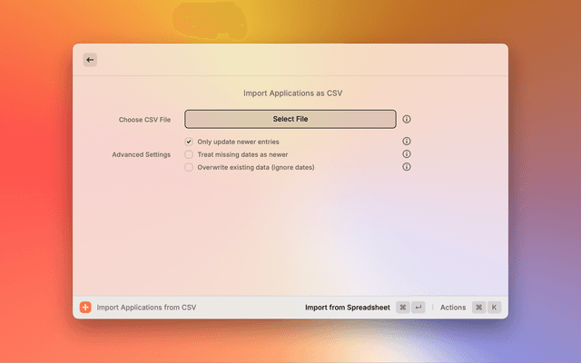 - CSV Import: Bring applications in with newer-wins conflict handling and advanced options