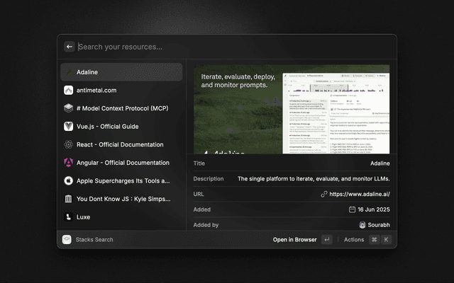 - 🔍 Search Resources: Browse and search through all your saved Stacks resources
