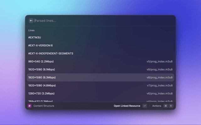A Raycast extension for viewing and navigating HLS/DASH manifest files with keyboard navigation.