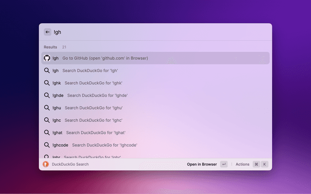 DuckDuckGo search extension for Raycast, with support for suggestions.
