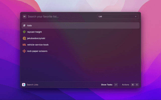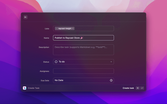 Search, create and manage tasks and lists in Height directly from Raycast.