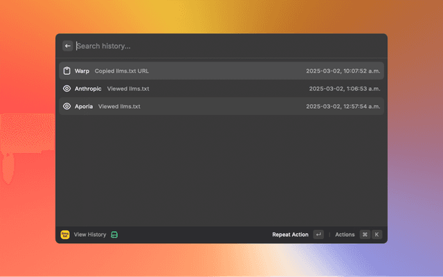 - 📜 History Tracking: Keep track of your previously viewed and copied llms.txt files