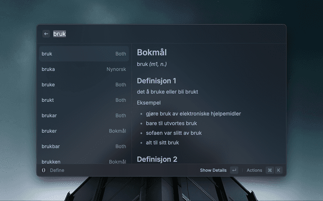Search the official Norwegian dictionary for both bokmål and nynorsk definitions.