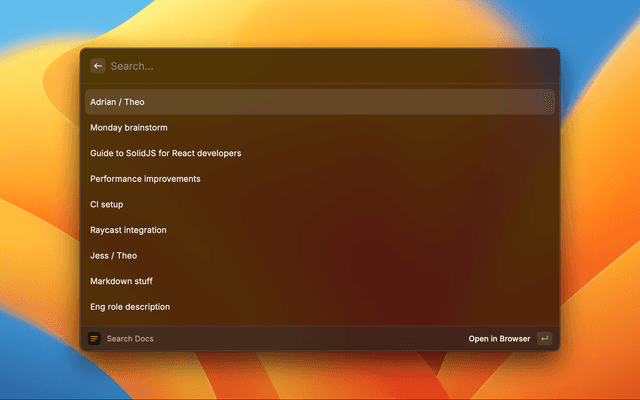 The Create Doc command creates a new document and opens it in your browser. You don't need a Stashpad Docs account to create documents.