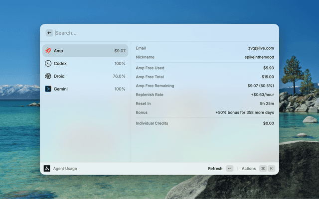 Codex Authorization Token).Authorization header value⌘⌥↑ / ⌘⌥↓ to reorder agents in the list| Shortcut | Action |