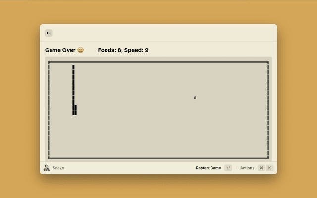 Raycast extension to play the classic game Snake ๐Ÿ.