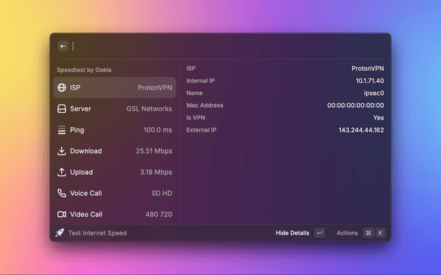 Unlock the true potential of your internet connection with Raycast's Speedtest extension. Powered by speedtest.net 🚀, this tool gives you the lowdown on your network's performance in seconds.