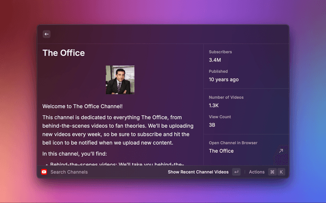 Now you should be able to search videos and channels on YoutTube with Raycast 🚀.