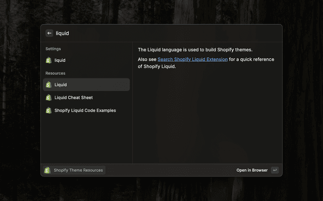 Search Shopify's Liquid Documentation Directly From Raycast
