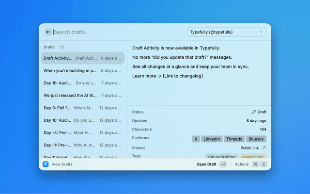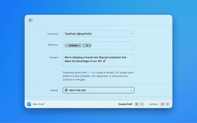 Create and manage social media drafts with Typefully, directly from Raycast.