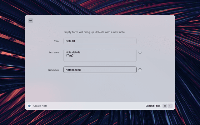 A basic raycast extension that supports creation of a note and notebook along with viewing notes tagged by a specific tag. The extension uses x-callback-url endpoints provided in the documentation.