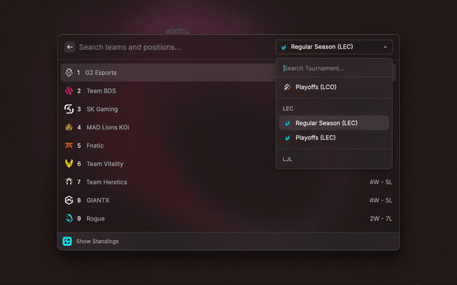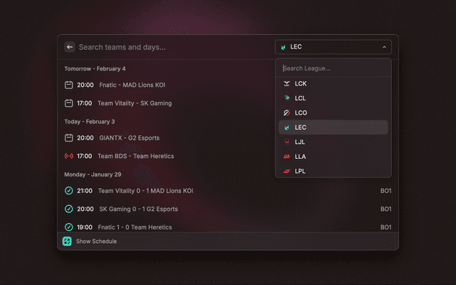 Search League of Legends esports schedules