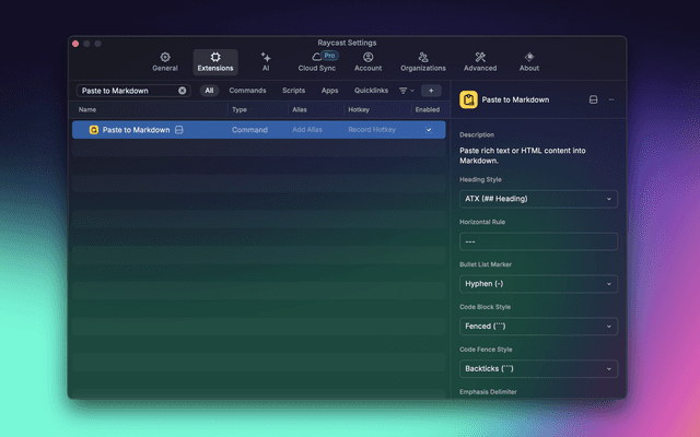 A Raycast Extension that instantly pastes rich text or HTML content into Markdown.