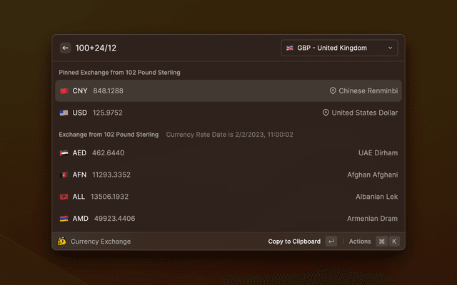 1+2/3*4${expression} in ${filter key word}${expression} at ${yyyy/mm/dd} or use Action 'Set Currency Date' [*Attention]* use historical currency needs Pro/Business/Volume Plan subscription, Free version does not allow query historical currency API. See detail: https://www.exchangerate-api.com/docs/historical-data-requests
