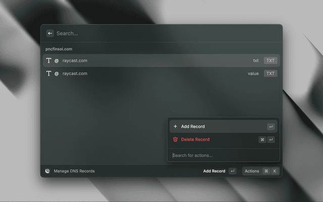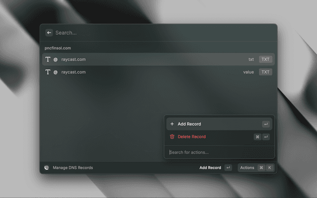 This is a Raycast extension for DreamHost - Web Hosting Built for Growth. With this extension you can view domains and manage dns zones.
