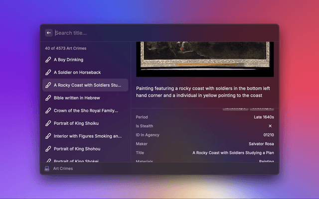 Get listing of wanted people and art crimes using the official FBI API (https://api.fbi.gov/docs/).
