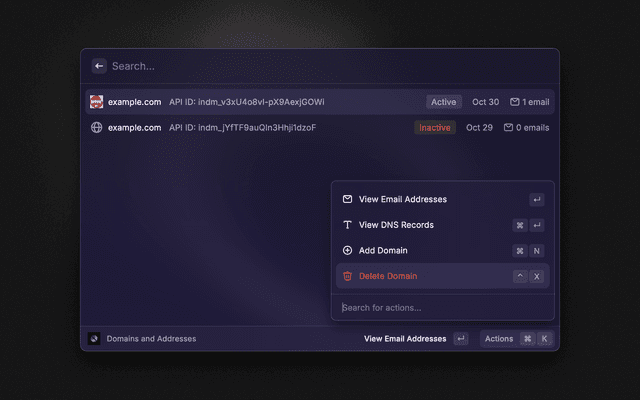 This is a Raycast extension for Inbound - Email API for Developers - Send, Receive & Reply.