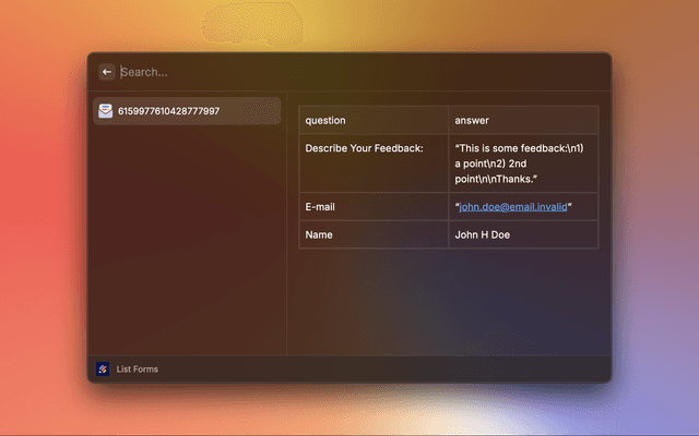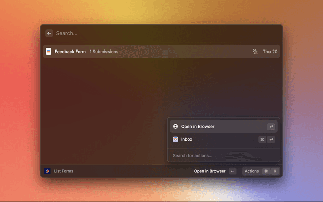 This is a Raycast extension for Jotform. With this extension you can view Forms and their Submissions.