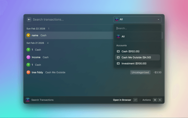 This is a Raycast extension for Maybe - The personal finance app for everyone.