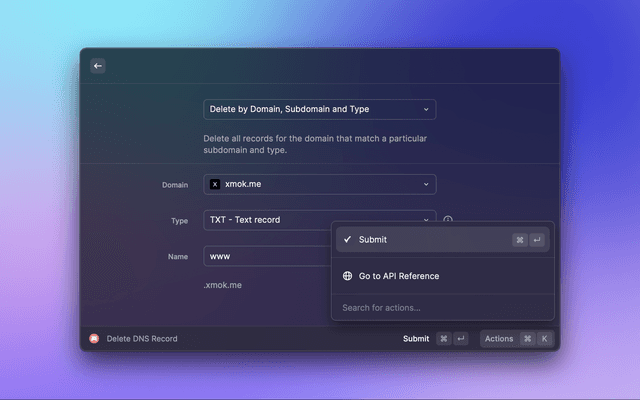 This is a Raycast extension for Porkbun. With this extension, you can: