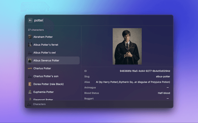 Dive into the magical world of Harry Potter via Potter DB.