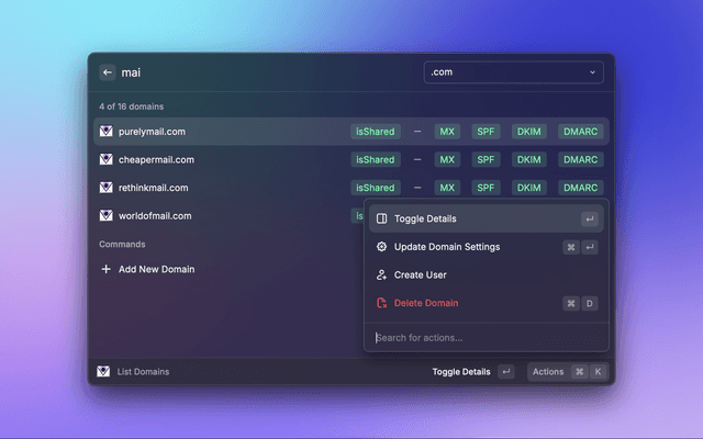 This is a Raycast extension for Purelymail - Cheap email for everyone.