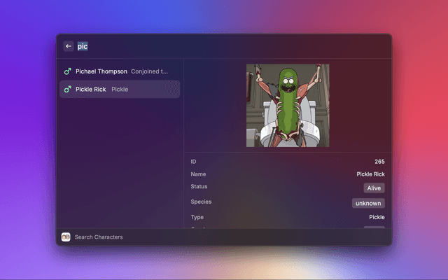 Access characters, images, locations and episodes from the television show "Rick and Morty" via the API at https://rickandmortyapi.com/.