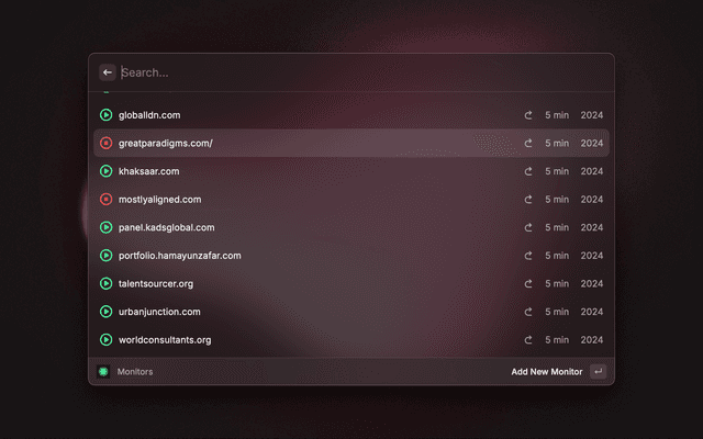 This is a Raycast extension for UptimeRobot - The world's leading uptime monitoring service.