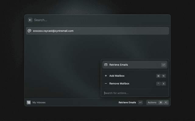This is a Raycast extension for Zyntra - Unlimited mailboxes for QA teams.
