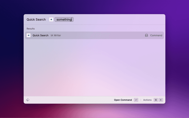 • Quick Search. Open quick search panel in iA Writer with queries.