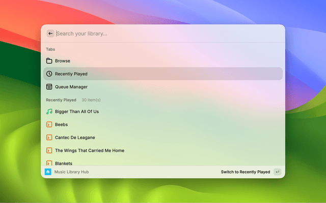 | Menu Bar Player | Display the current track in the menu bar with playback, grouping and volume controls ⓘ |