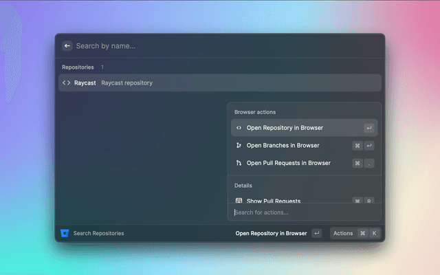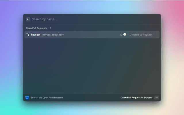 Raycast extension to search repositories, open recent Pull Requests.