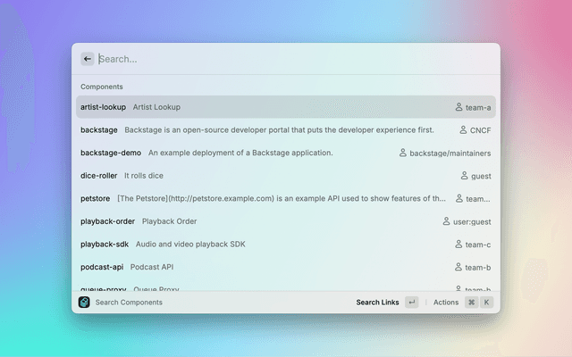 Shortcuts for the Backstage catalog in your company.