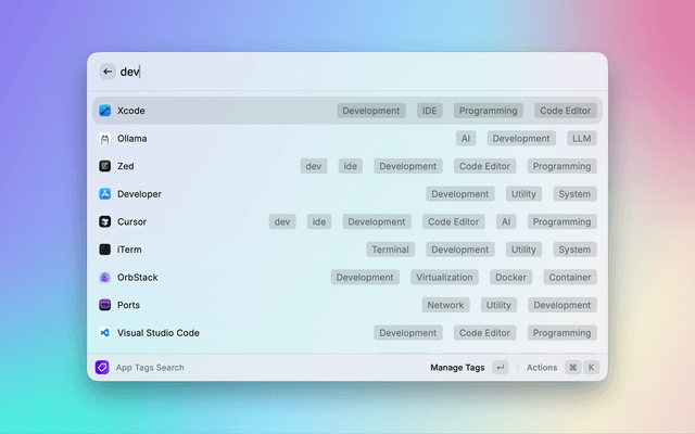 Organize and search your macOS applications with custom tags. A powerful Raycast extension that makes app discovery instant and intuitive.