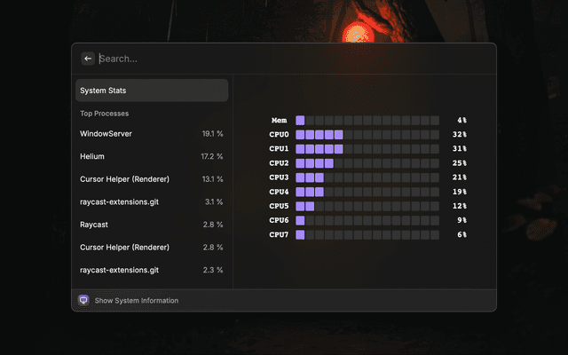 Raycast Store: Lemniscate | System Monitor